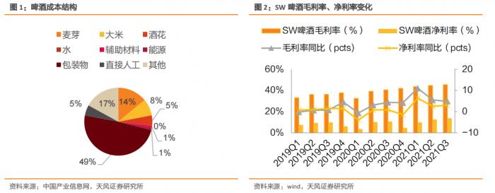 复盘行业涨价,天风证券总结出以下三点规律:啤酒涨价多为成本驱动型提价,龙头啤酒企业带动领涨。本轮啤酒行业涨价主要原因为:原材料大宗商品价格上涨;环保税法执行,包材、玻璃等价格上行;消费升级背景下具备提价能力及基础。目前啤酒市场格局趋稳,提价成为共识,且各龙头公司在基地市场话语权强,成本压力下游传导阻力较小。此外,本轮提价涉及乌苏等高端啤酒,结构升级及产品提价双举并行,提价改善渠道利润空间,吨价上行打开长期盈利空间,本年度低基数下弹性或将释放。