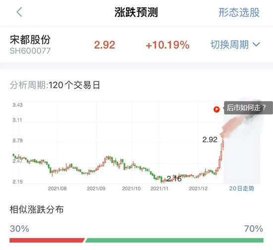 以近期持续反弹的宋都股份为例,利用新浪财经-形态识金对其现有120天的形态走势,分析了该股未来20天的走势预测,后市能否持续走强?打开新浪财经-形态识金速来解锁gt;gt;未来走势也就不再成迷!